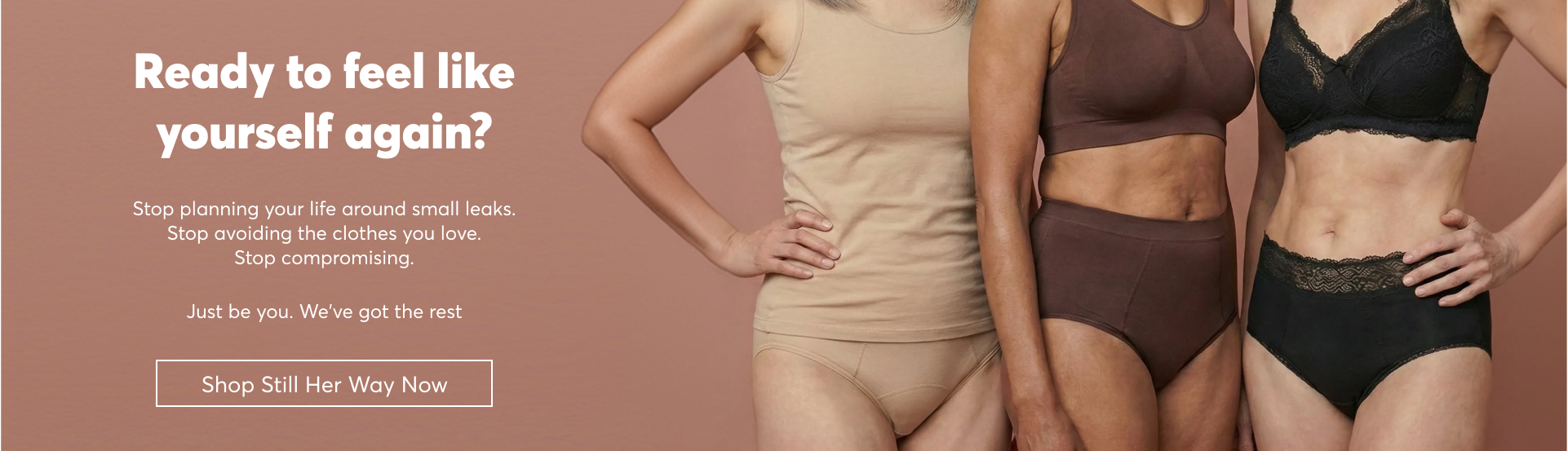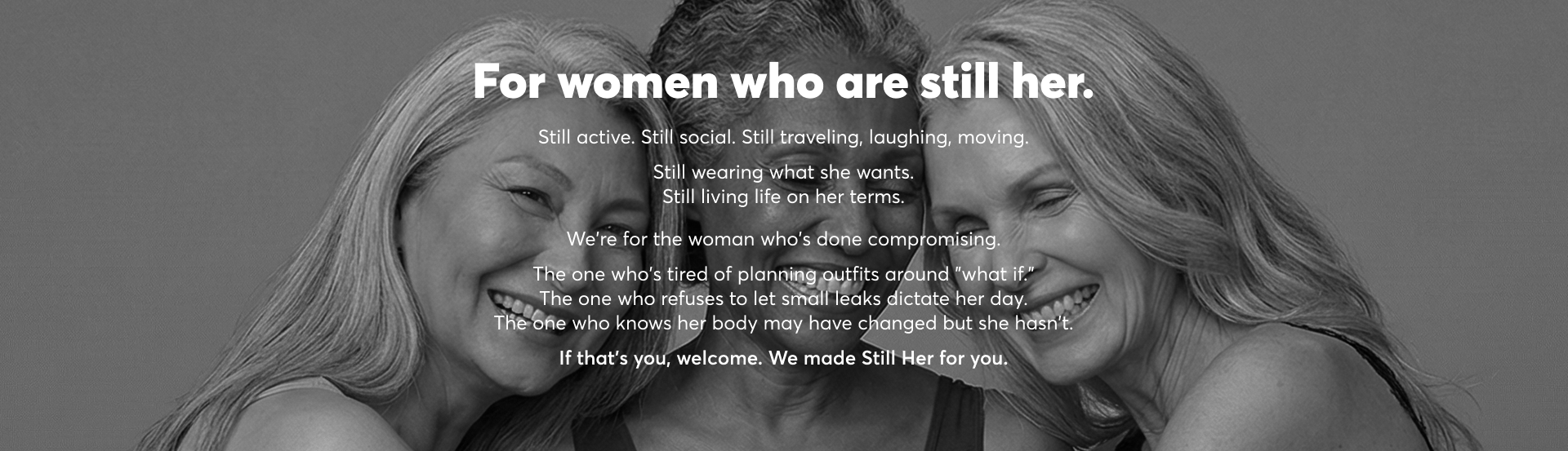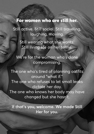 We created Still Her Way for women who refuse to let small leaks change their lifestyle. Because experiencing bladder leaks doesn't mean giving up your favorite jeans, your long walks, or your confidence.